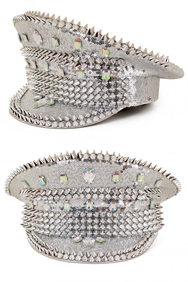 Deze zilveren pailletten pet met studs maakt jouw look helemaal compleet!