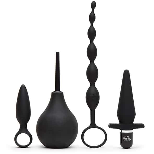– Alles wat je nodig hebt om te starten, butt plug, anaal kralen, vibrerende buttplug en anaal douche