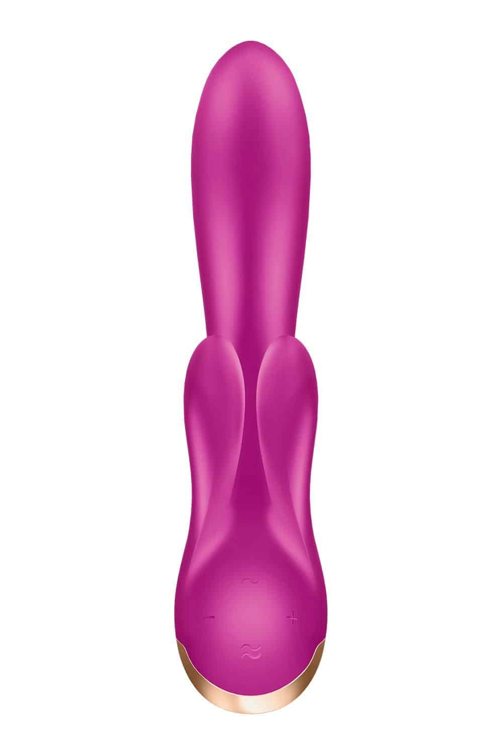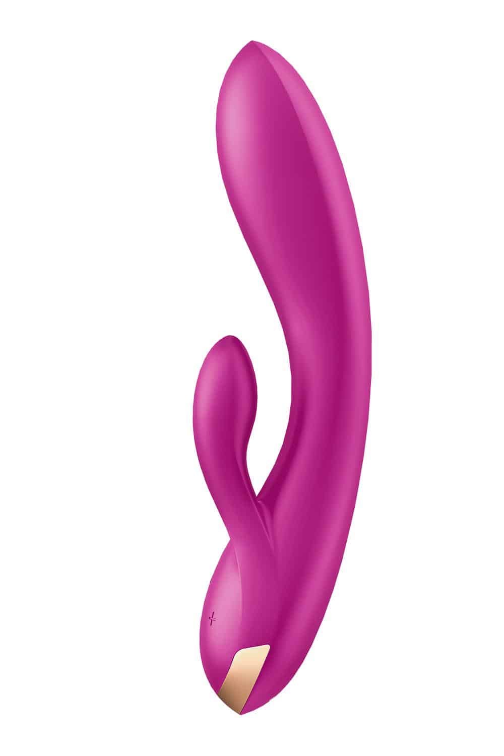 Stimuleer met drie sterke motoren tegelijkertijd de clitoris, G-spot en schaamlippen. Met een motor in elk van de kleinere schachten, ervaar je een bredere, intensere stimulatie, rond de clitoris! Via Bluetooth maakt de Double Flex verbinding met de bekroonde, gratis Satisfyer Connect-app, waardoor je de mogelijkheid hebt om de krachtige motoren onafhankelijk te bedienen en je plezier echt aan te passen. De Double Flex is gemaakt van lichaamsveilige siliconen, is oplaadbaar en waterdicht (IPX7).