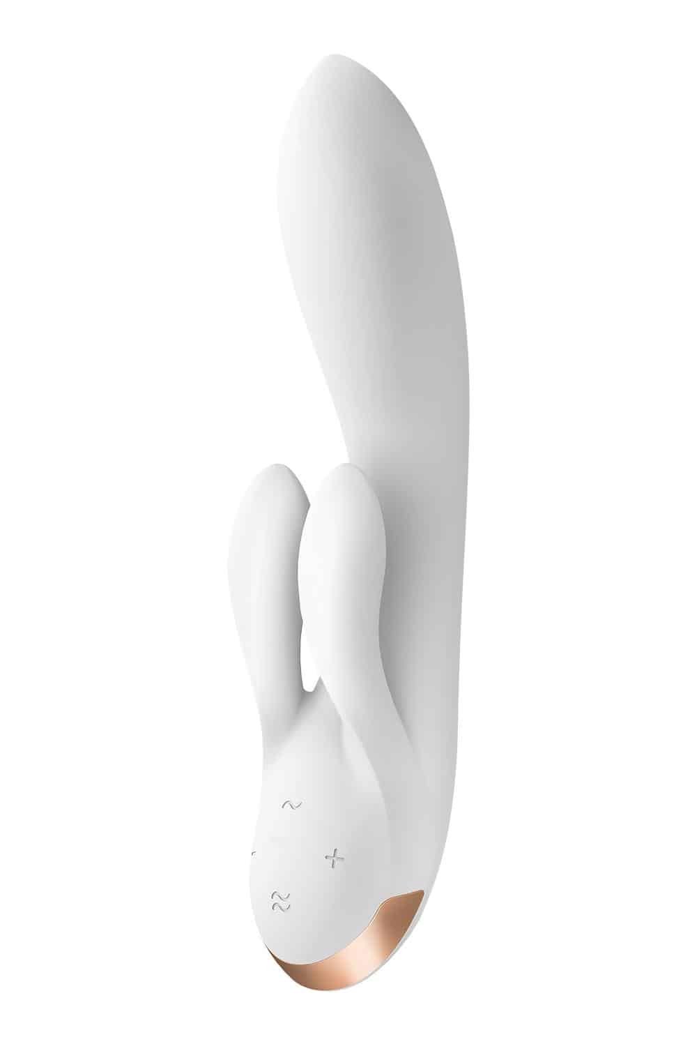 Deze Double Flex Rabbit Vibrator is de meest unieke vibrator die er is. Het geeft 3-zijdige stimulatie aan de G-Spot, clitoris en schaamlippen! Hij is verkrijgbaar in vier kleuren: wit, rood, roze en zwart.