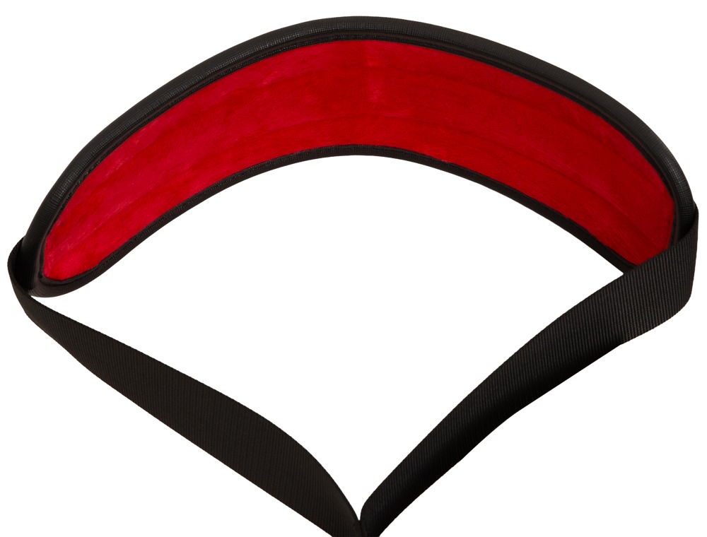 Het harnas is gemaakt van stevige straps met hoogwaardige kunstleren padding in zwart en rood, afgewerkt met elegante goudkleurige details. De zachte schouder- en beenpads zorgen voor optimaal comfort, zelfs tijdens intens gebruik.