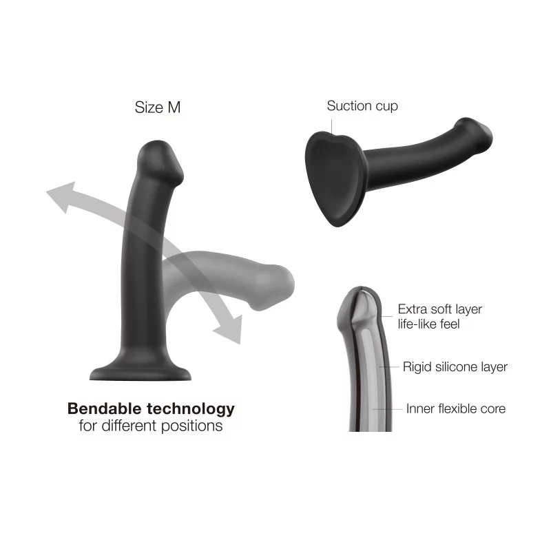 De buitenste ultrazachte laag gecombineerd met een stijve siliconen binnenkern biedt ultiem comfort voor maximaal plezier. Deze buigbare siliconen dildo met hele sterke zuignap is verkrijgbaar in vier verschillende maten.