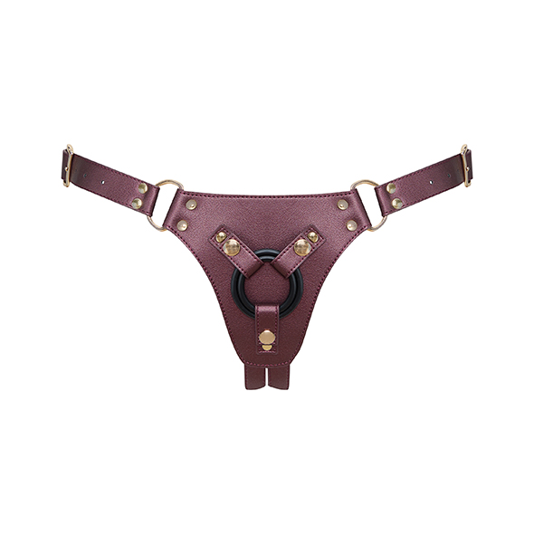 Dit prachtige metallic paarse voorbindharnas met verstelbare bandjes bij de taille en billen, accentueert jouw rondingen tot in de perfectie en biedt totale bewegingsvrijheid. Aan de voorkant van het harnas bevindt zich een dubbele stretch siliconenring, klaar voor de dildo van jouw keuze.
