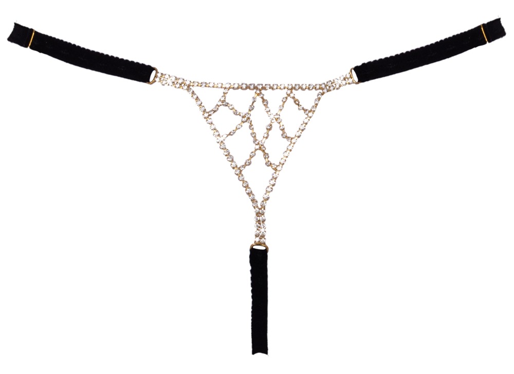 Luxe string met strass triangle en gouden details – Cottelli Lingerie