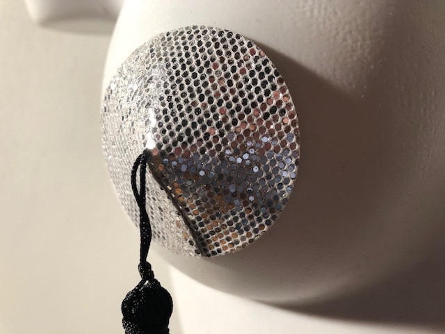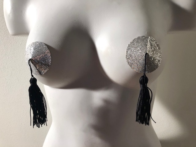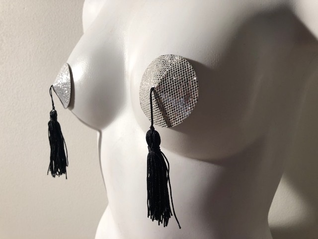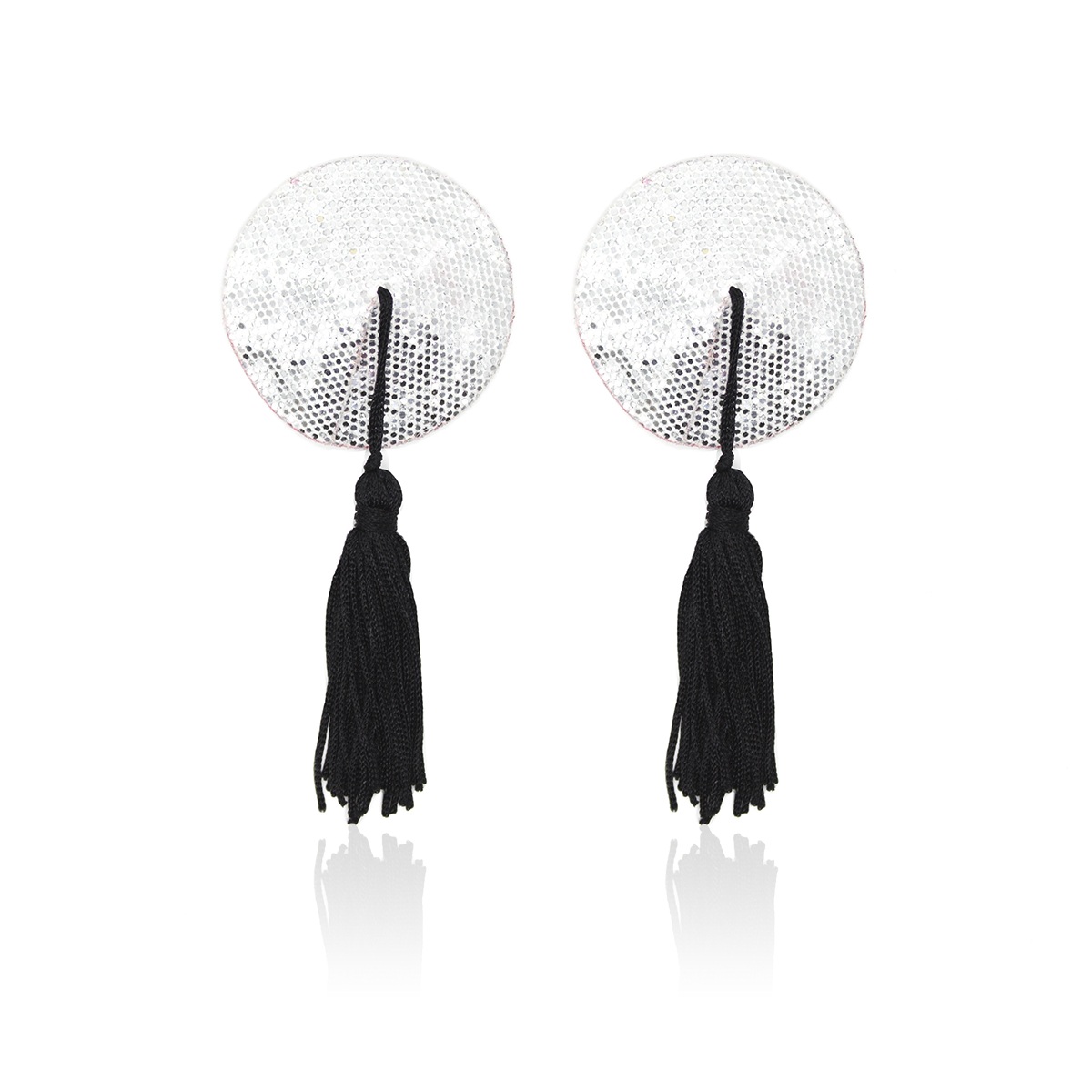 Deze ronde tepelplakkers zijn bezet met glittertjes en hebben een kwastje.