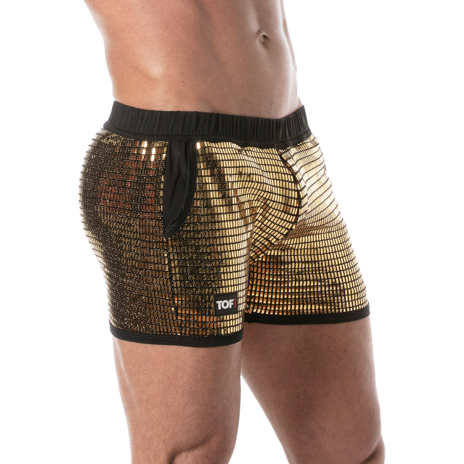 Maak een onuitwisbare indruk met deze glitter shorts van TOF Paris – ontworpen voor mannen die durven te laten zien wie ze zijn. De glinsterende pailletten, het lage model en het op maat gemaakte design zorgen voor een verleidelijke en glamoureuze uitstraling, perfect voor themafeesten, pride, clubwear of gewoon een pikante night out.