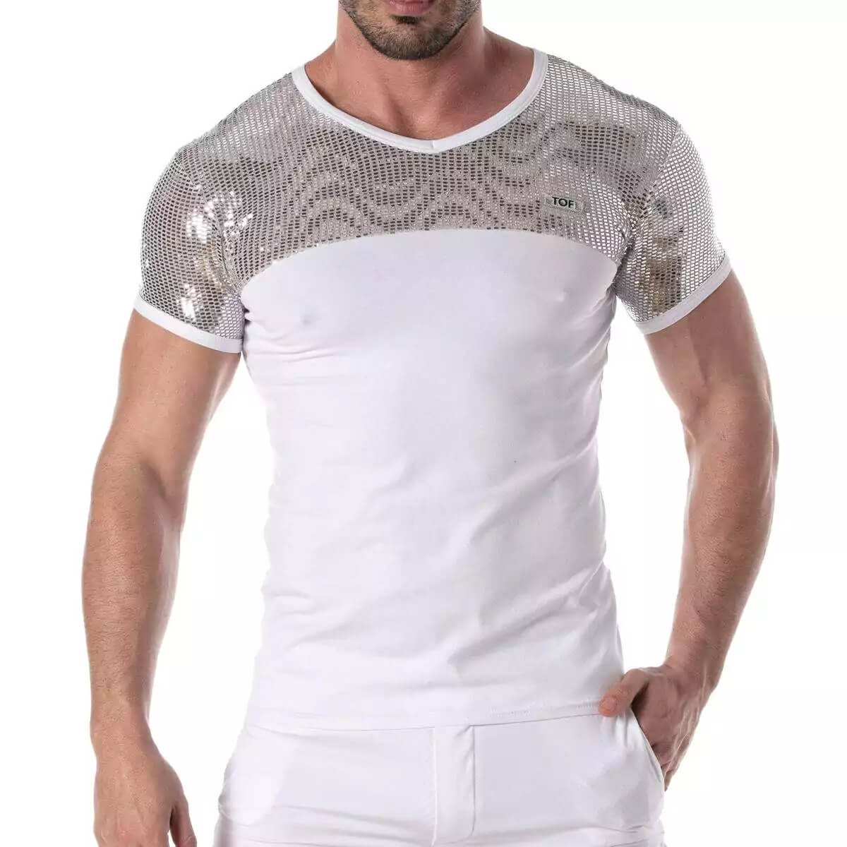 De pailletten zijn aan de binnenkant gevoerd voor optimaal comfort. Het TOF PARIS-logo is aan de hartzijde genaaid, een symbool van kwaliteit en stijl.