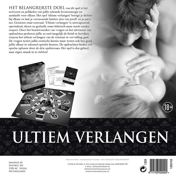 Het spel 'Ultiem Verlangen Classic Edition’ is een ongekend succes zowel in Nederland als ver daarbuiten. Het verschijnt inmiddels in alle grote talen en wordt wereldwijd verkocht in meer dan 30 landen. Dit is de nederlandse editie, maar u kunt deze eventueel ook bestellen voor de volgende talen: EN, DE, FR, ES. Mocht jij het nog niet gespeeld hebben………, ga de uitdaging aan en geef je seksuele relatie een speelse oppepper.