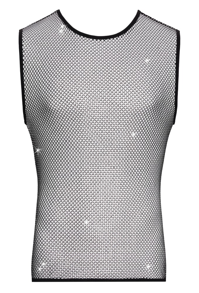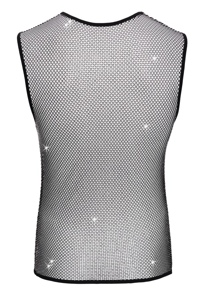 Transparant net shirt met strass – mouwloos heren shirt